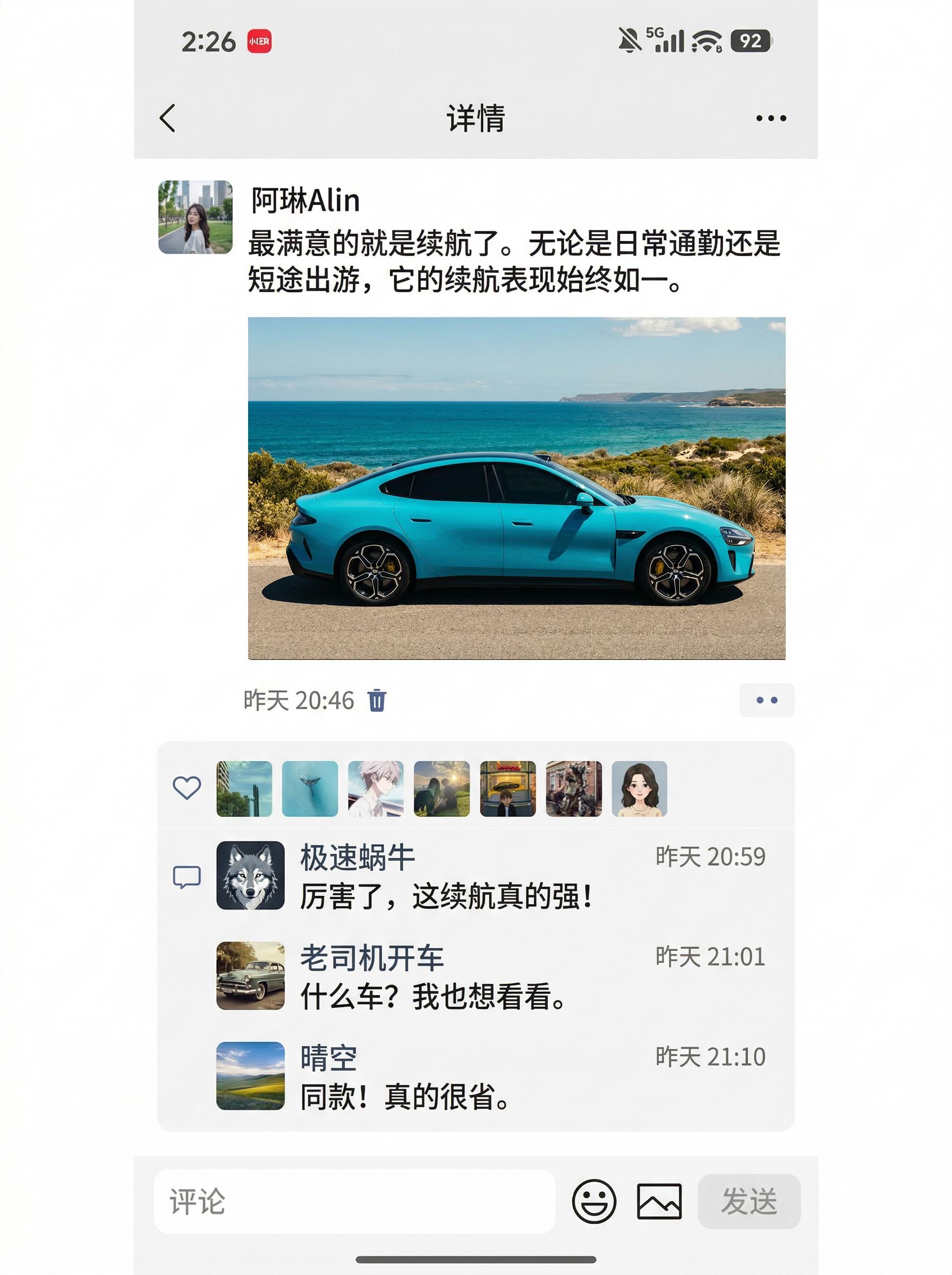 蓝色车主朋友圈都发什么?