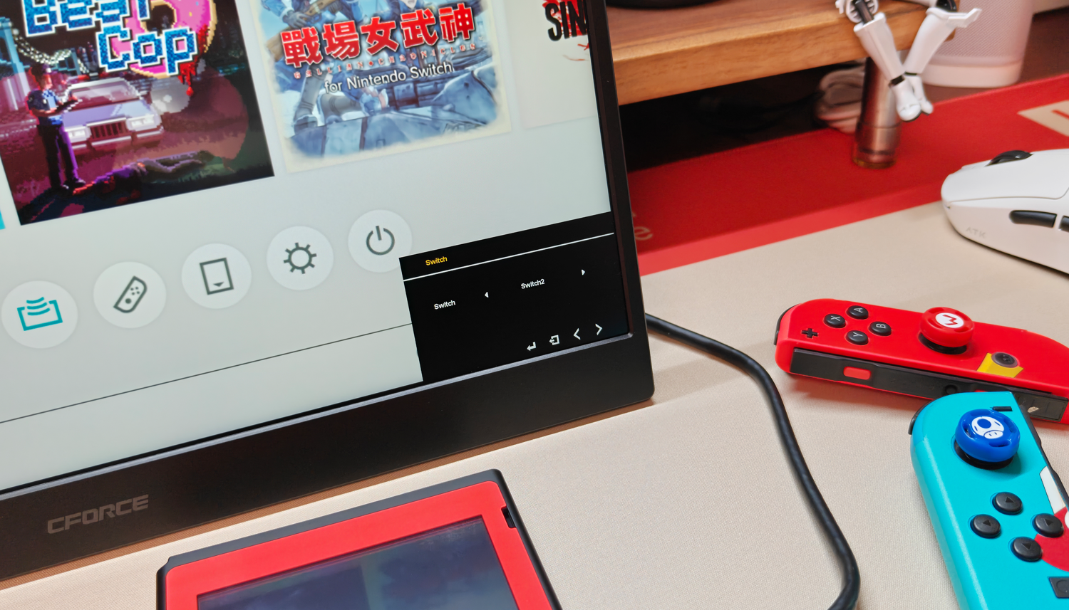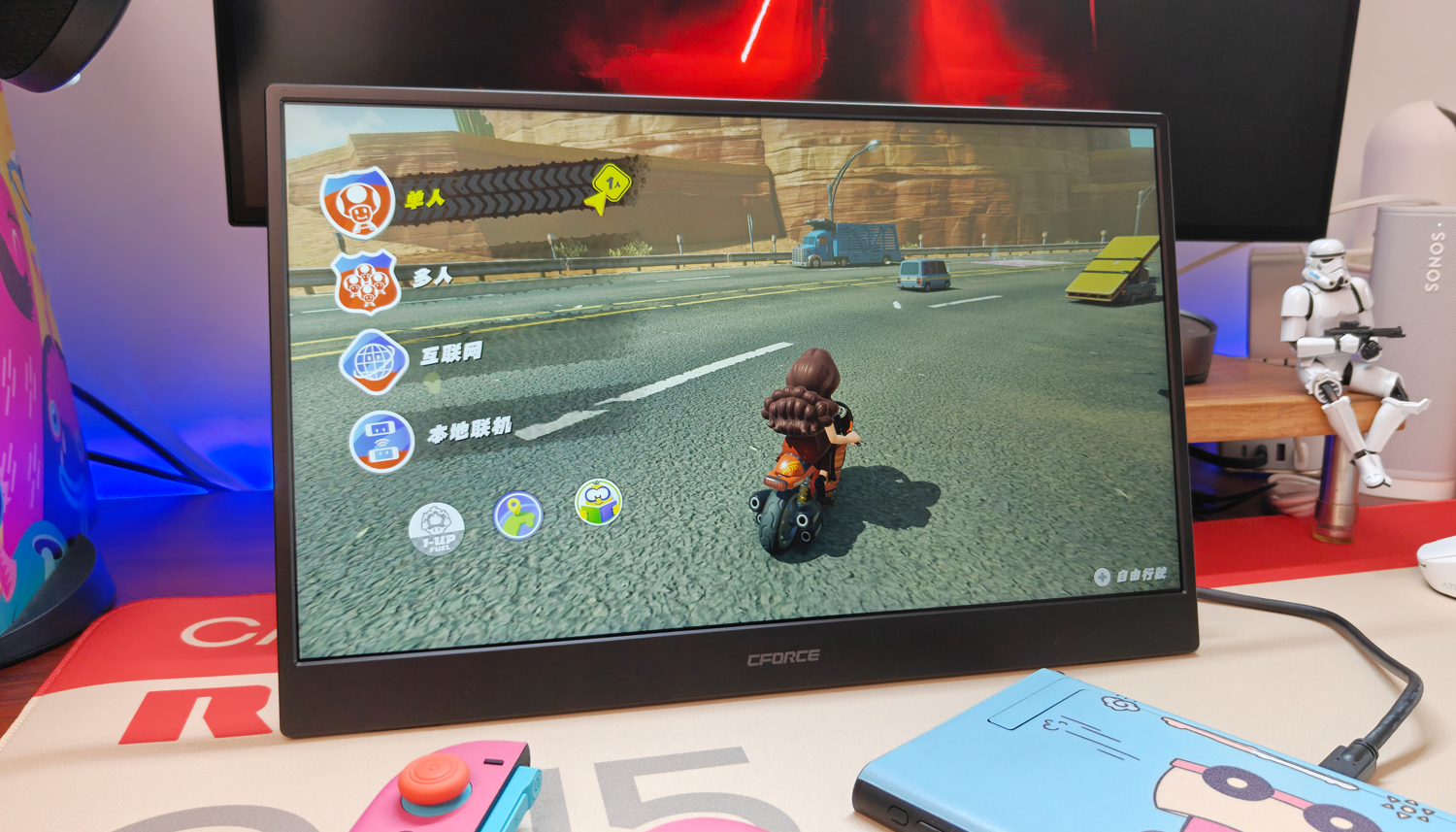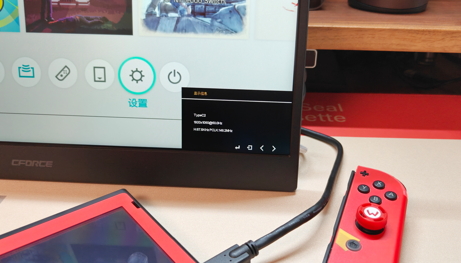 拿到CFORCE 016N便携屏,最让我惊喜的是它和Switch2之间的那种“即插即用”的畅快感。以往想用电视模式,总得翻出底座、接电源、连HDMI,麻烦不说,桌面也乱糟糟的。现在只需给便携屏通上电,再用一根Type-C线直连Switch2底部的接口,TV模式便会瞬间激活。