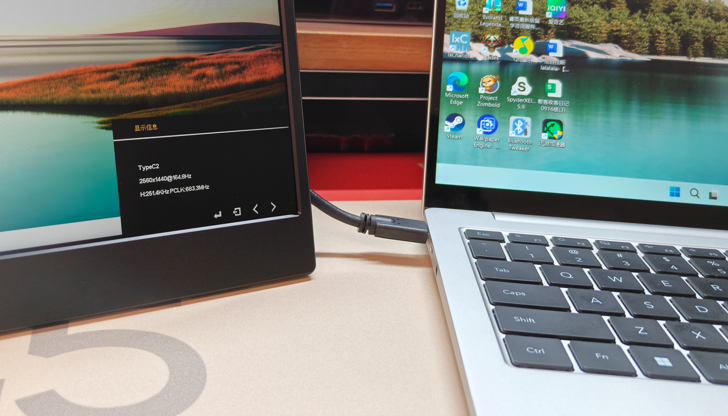 说到连接电脑,这块拥有2560×1440分辨率,最高支持165Hz刷新率的屏幕,当笔记本的扩展副屏体验非常出色。不管是处理多窗口的文档表格,还是看高帧率电影或者玩游戏,都能获得丝滑流畅、没有撕裂的视觉享受。工作间隙,把它当作副屏追两集剧,也是一种惬意的放松。