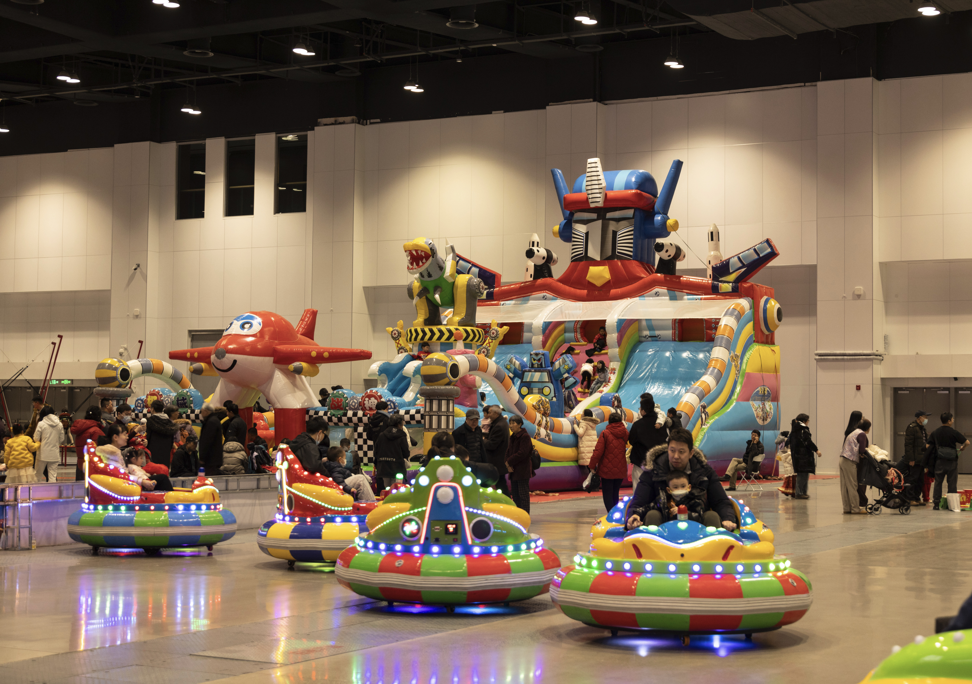 庙会主要分三大片,一片是科技主题,机器人、机器狗灵动性越来越强了,还有很多科学体验项目,以及一些游乐项目,孩子们在这里流连不舍。