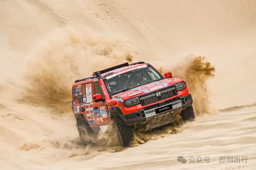 征服陆地的底气则来自强悍动力内核。其最大输出904匹马力,性能媲美豪华品牌V8发动机,搭配内高压一体式大梁与智能三把锁,无论是陡坡攀爬还是崎岖地形皆从容应对。在2025环塔拉力赛中,作为唯一未上市的量产车型,它直面专业改装赛车斩获5个赛段冠军,将“过剩产品力”转化为看得见的赛场荣耀。而卫星通讯系统的搭载,更让“空之联”成为现实,在可可西里无人区等极限环境中实现永不断联,为探险之路筑牢安全防线。