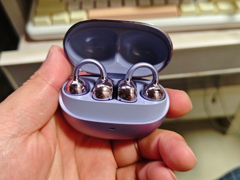 它采用记忆柄丝骨架配合非对称流线设计,加上5.5g的单耳重量,能够较好顺应多数用户的耳廓轮廓,提供稳固的佩戴效果。不过耳夹结构对耳廓的压力分布不够均匀,舒适性一般。