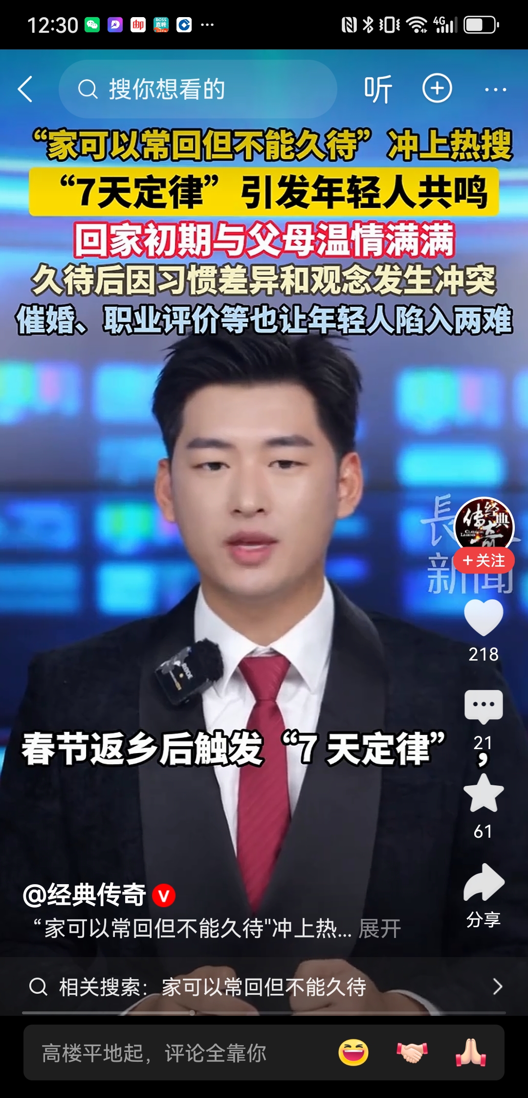 “家可以常回但不能久待”,这句话在春节期间频频冲上热搜,年轻人返乡的“7天定律”更是引发全网强烈共鸣。刚回家的前几天,父母嘘寒问暖、精心备餐,阖家温情满满;可一旦待到第七天左右,作息差异、生活习惯、观念分歧便集中爆发,催婚、催生、职业规划、消费理念等话题接踵而至,让原本温馨的团聚迅速陷入尴尬与摩擦。很多年轻人坦言,回家的最佳时长仿佛被精准设定,不多不少,恰好7天。