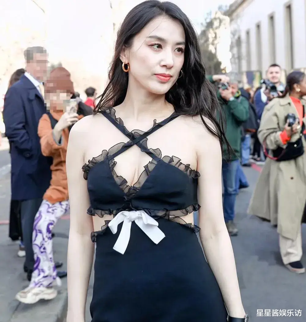 黄圣依的巴黎街拍照怎么样,穿着十字交叉挂脖吊带裙配裤子,走在街上回头率200%啊,这谁不会多看两眼呢,不过头发是不是没有卷好,感觉太贴头皮了。