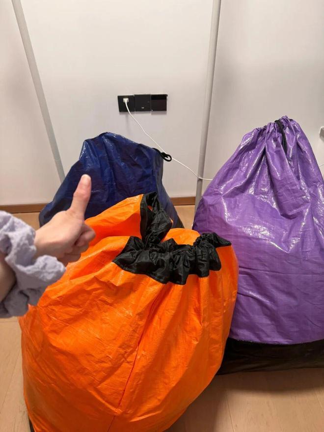 PE材质,防水耐磨,自带抽绳;装被子、衣服、杂物都很合适,用完还可以折叠收起来,比一次性纸箱实用多了。