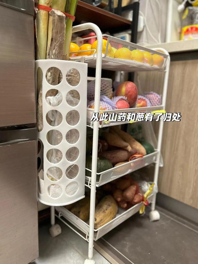 另外,像厨房里不好收纳的大葱、山药等蔬菜,也可以用它收纳,而且还有了充足的通风环境。