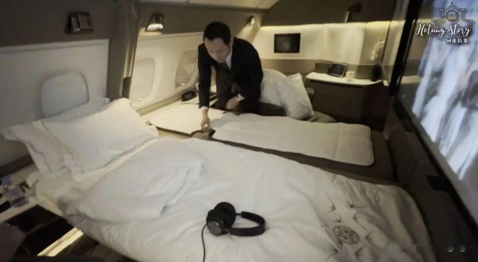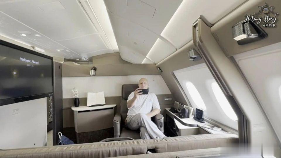 登上飞机,进入 A380 头等舱套房的那一刻,更是让人惊叹。客舱空间十分宽敞,完全没有普通经济舱的局促感。套房内还设有独立的私人房间,拉上帘子,就能拥有一个完全私密的空间,无论是休息还是处理私人事务,都不会被打扰,隐私性和舒适性达到了极致。座位旁配备了高级的影音系统,各种娱乐资源应有尽有,让漫长的飞行时光不再枯燥。更让人惊喜的是,座位可以完全平躺,瞬间变成一张舒适的双人床,这哪里像是在坐飞机,简直就像住进了豪华酒店的套房。