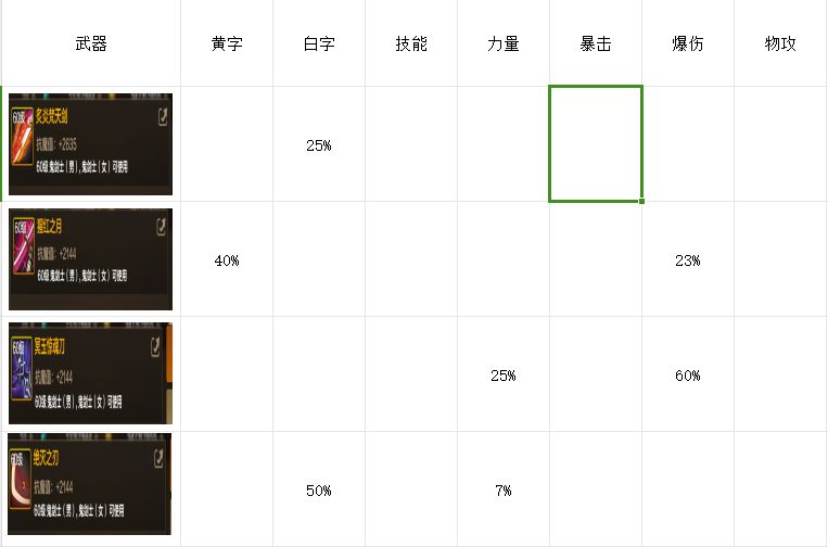 可以看到虽然猩红之月黄字伤害比爆伤刀的力智叠加更加稳定,但是爆伤却差了接近3倍,这也导致爆伤刀的上限更高,所以各主播推荐毕业套的时候是把爆伤刀列为首位。