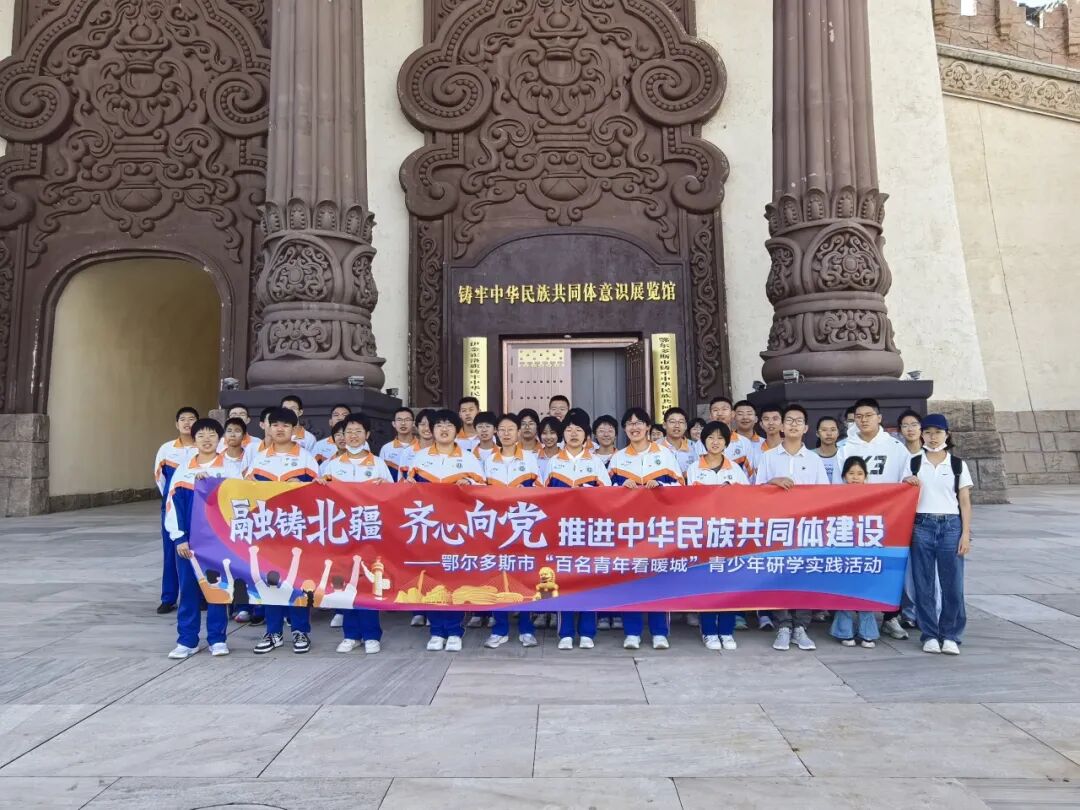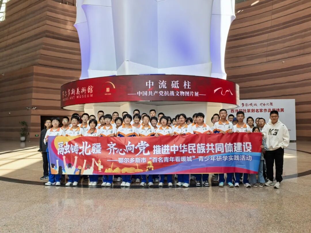 为充分发挥共青团在青少年思想政治教育中的引领作用,9月7日,鄂尔多斯市第一中学伊金霍洛旗分校组织学生开展研学实践活动。此次活动结合自治区第42个民族团结进步活动月安排,带领同学们走进鄂尔多斯文化产业园铸牢中华民族共同体意识展览馆和鄂尔多斯市美术馆,在沉浸式参观体验中感悟民族团结的伟大力量,坚定文化自信,厚植爱国情怀。
