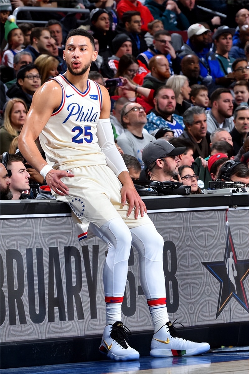 那一球之后,西蒙斯整个人像被抽空了。休赛期闹着要走,训练营不参加,比赛不打,背伤反反复复。后来去了篮网,再后来去了快船,状态一年不如一年。不会投篮的短板被无限放大,心理问题越来越严重。