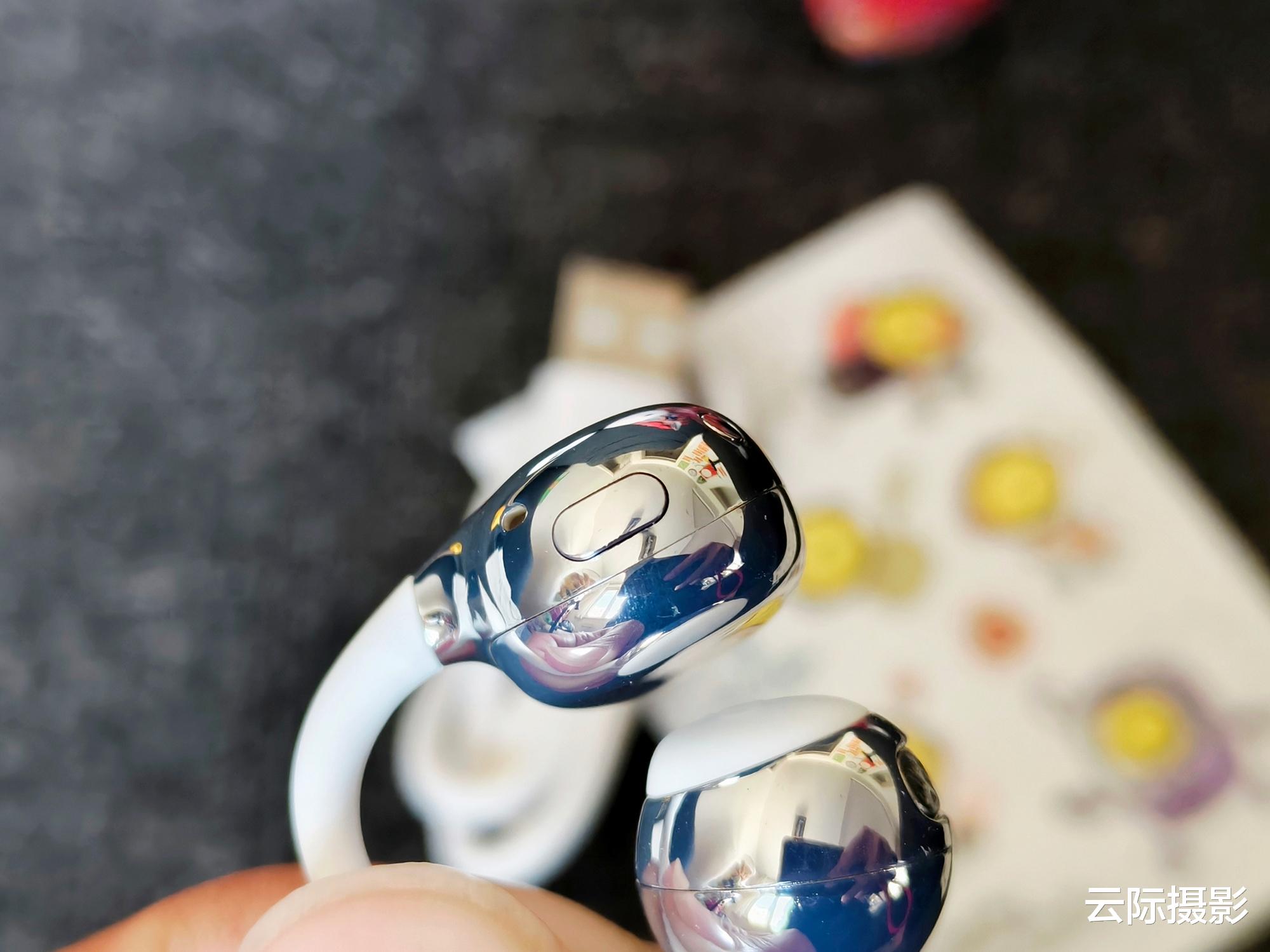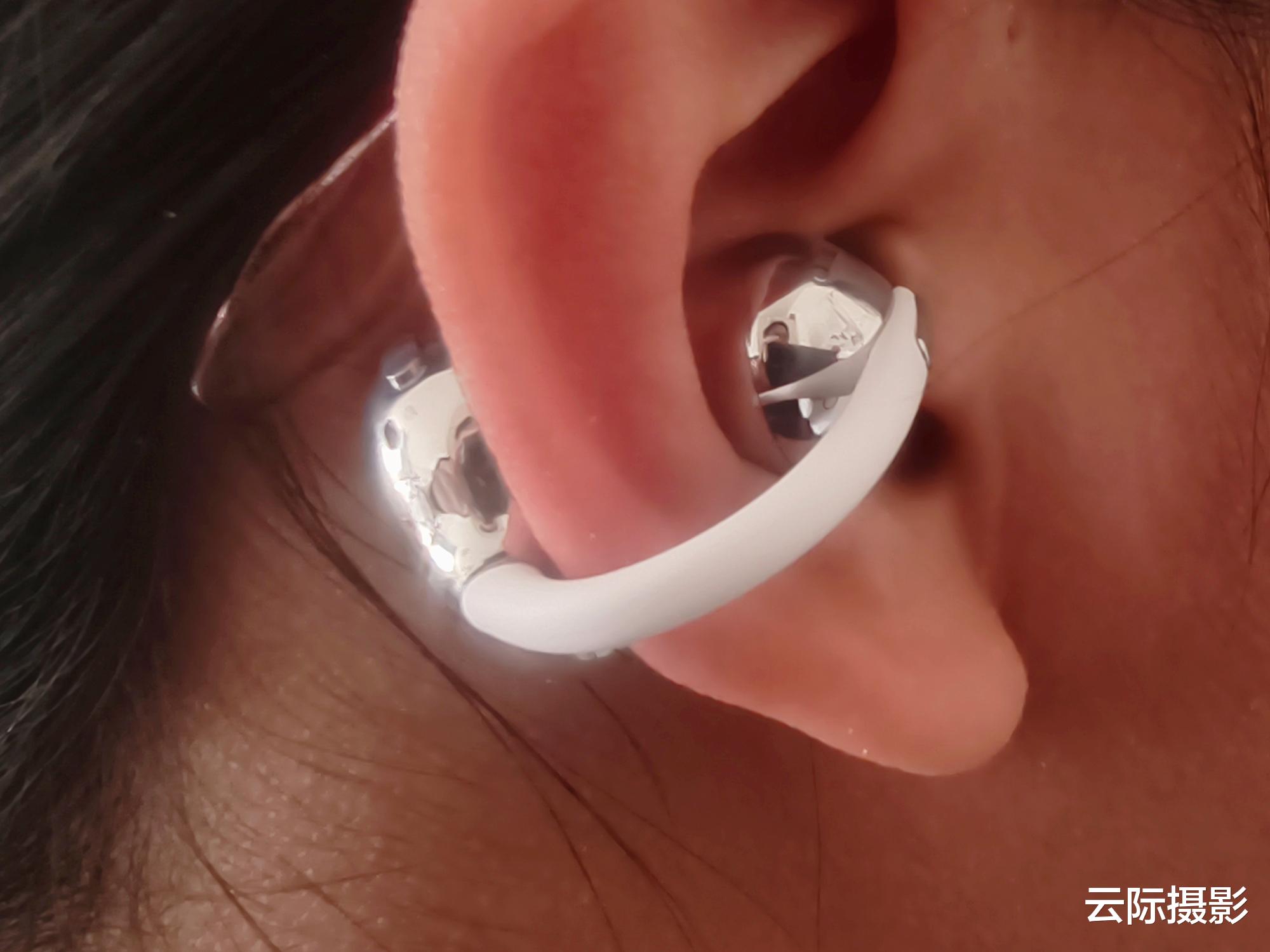耳机造型方面,其采用了创新极细C桥设计,其纤细机身和拿握在手的质感很好,特有的加长弧度能适配多种耳型,有效避免了夹耳不适感。