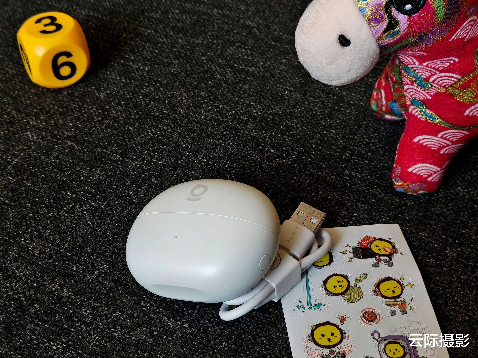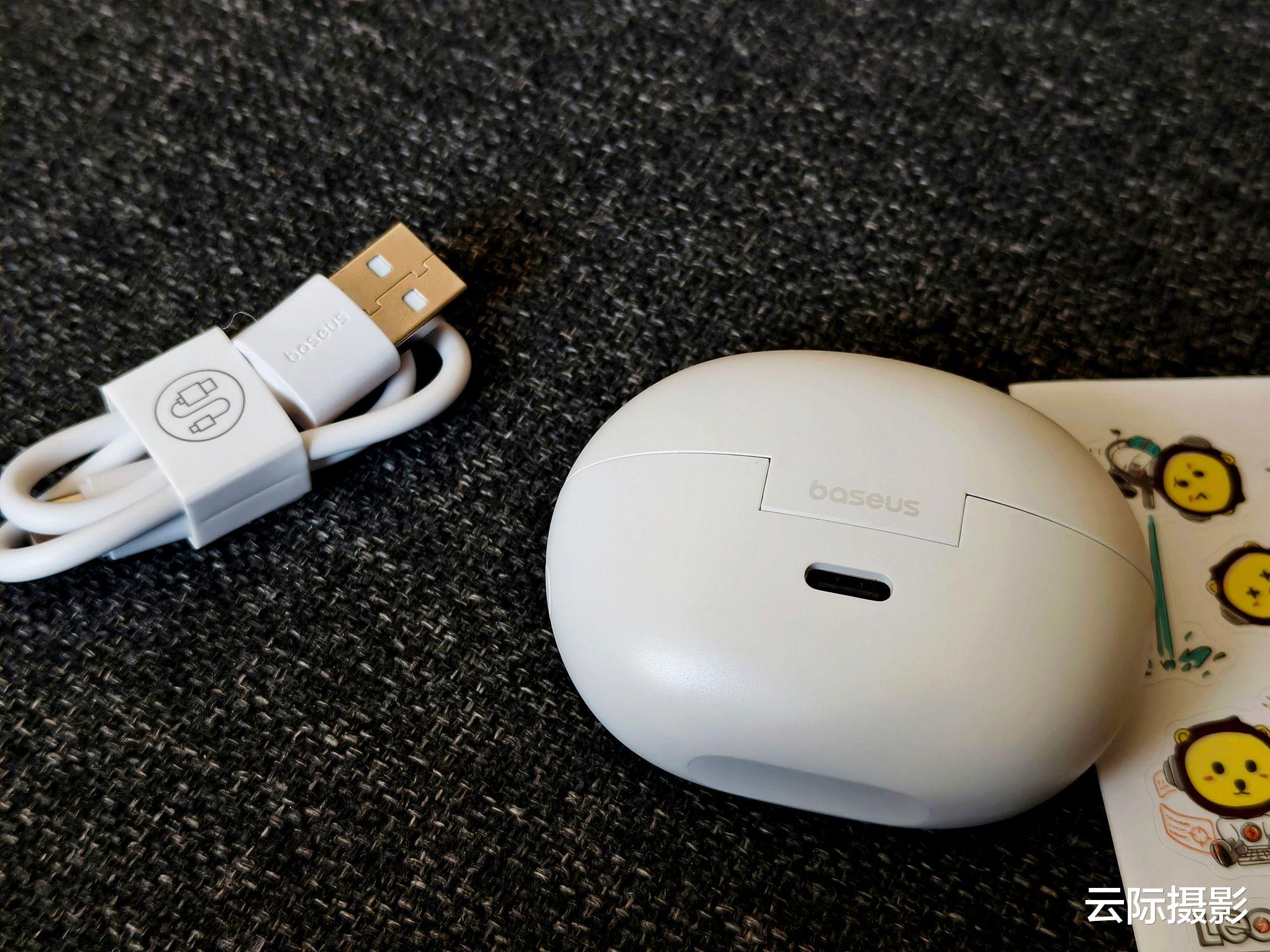 充电仓的手感很不错,其背面有baseus的品牌字样并且是通用的USB-C充电口,使用起来很便利。