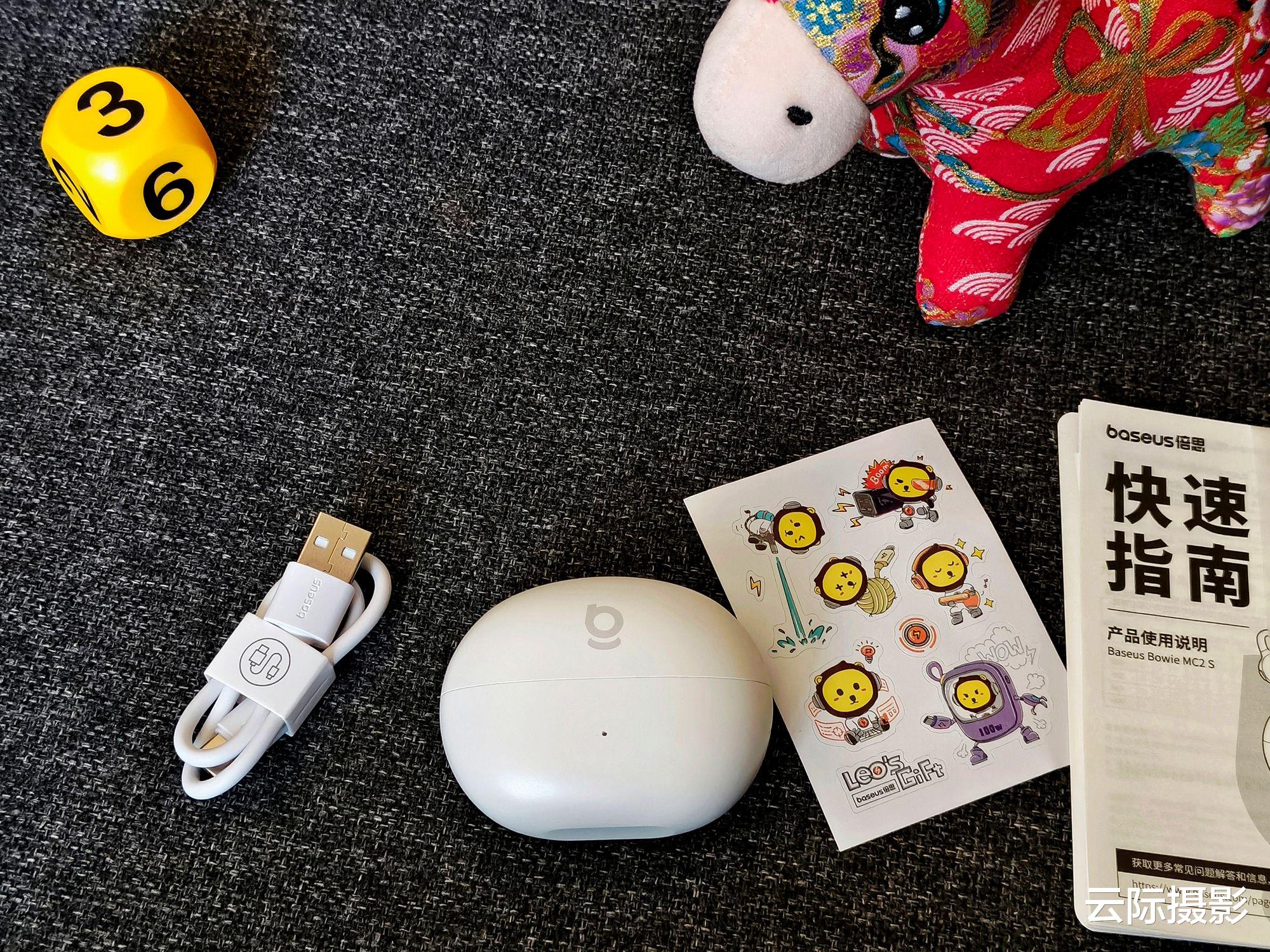 外观方面,对比之前体验过的一款大个头的耳机来说,其充电仓的设计特别的小巧且精致,与传统的蓝牙耳机充电仓大小相差不错。并且配件很齐全,包含充电线、快速使用指南和精致的贴纸。不仅适合自用,而且当礼品赠送的话也很不错。