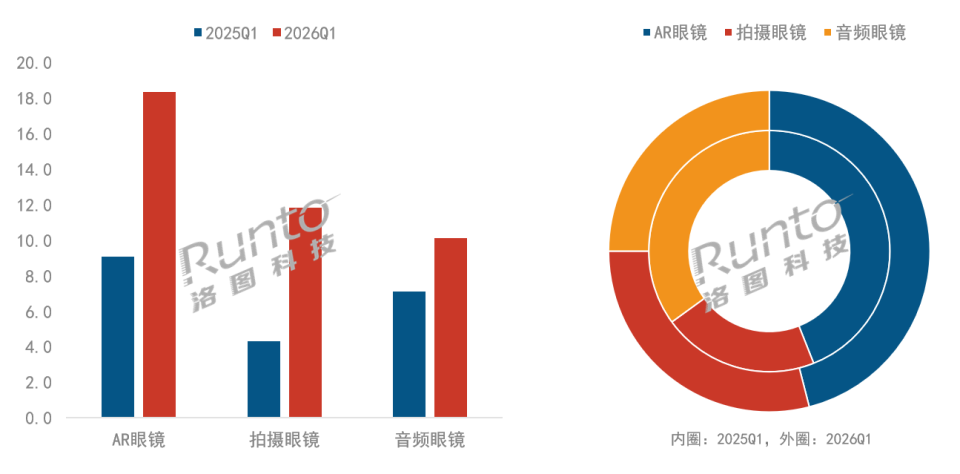 2026Q1 中国智能眼镜市场分产品类型销量规模及结构变化