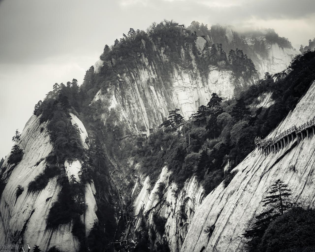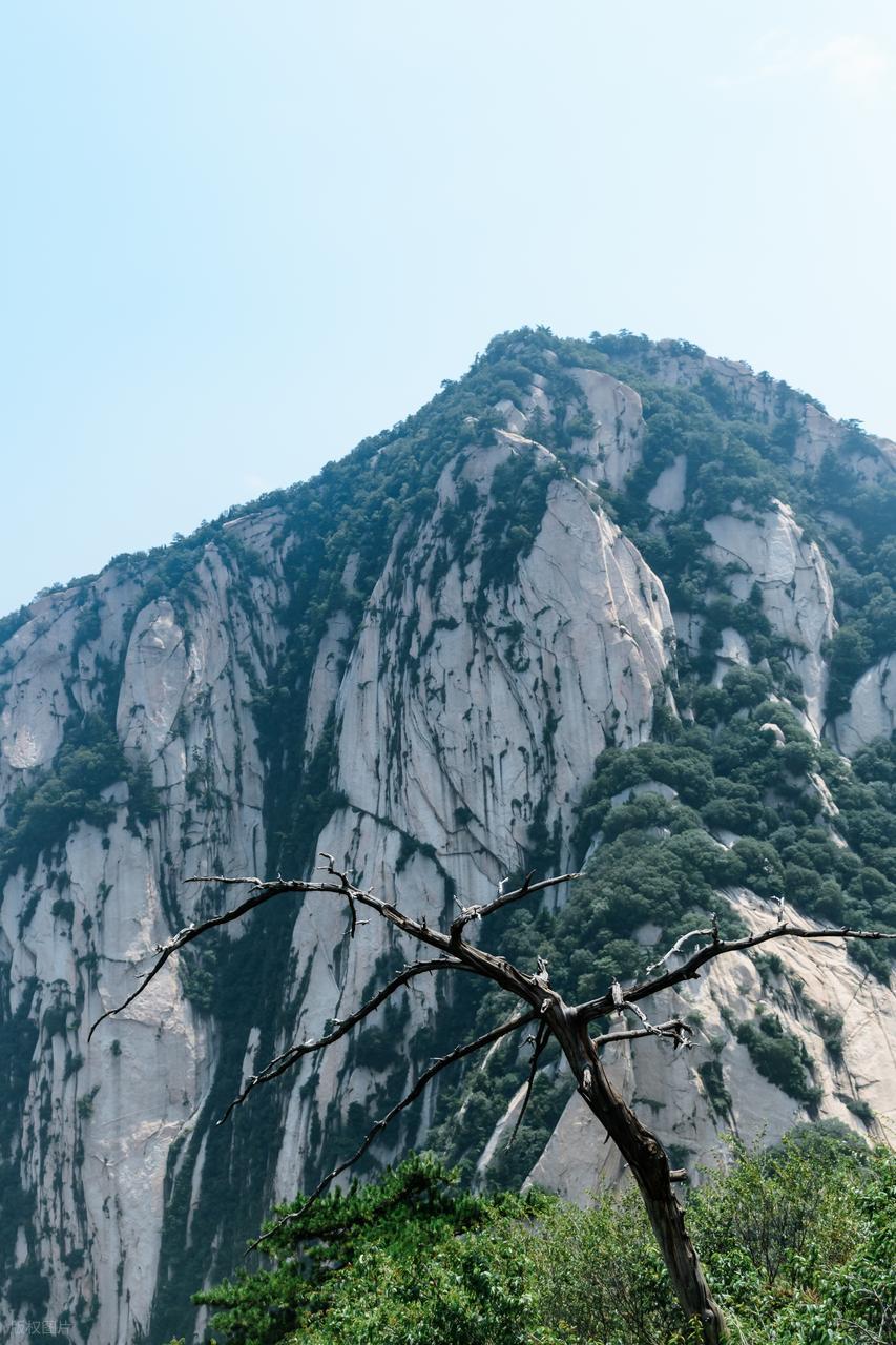 华山位于平原地带,一座高山拔地而起,会产生巨大的压迫感。此外华山是一整块花岗岩,山体四周如同刀削一般垂直矗立平原之上。由此产生高耸入云的感觉,让华山看上去插入天空。