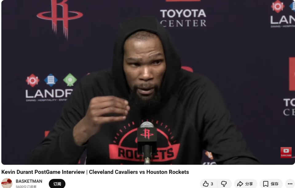 火箭大胜杜兰特直呼真爽