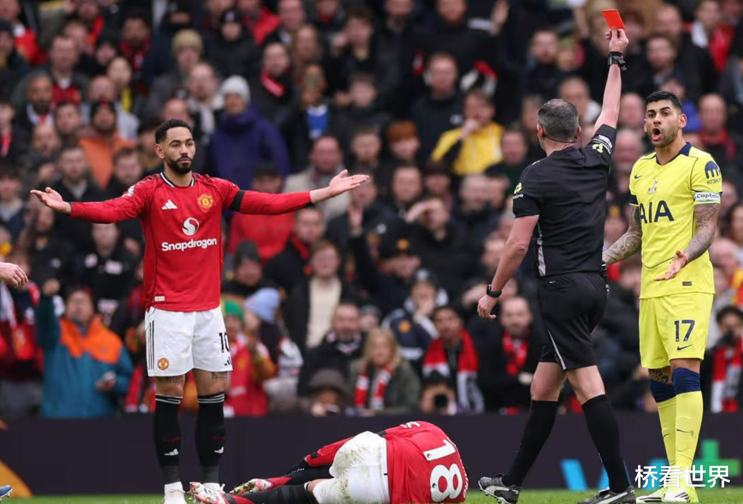 托特纳姆热刺的罗梅罗因对卡塞米罗犯规,被主裁判迈克尔·奥利弗出示红牌。