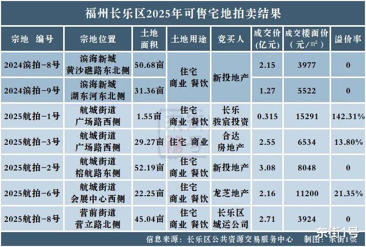 今年以来,长乐共成交了7幅可售宅地,其中3幅被本土民企拿下,还都是溢价成交。