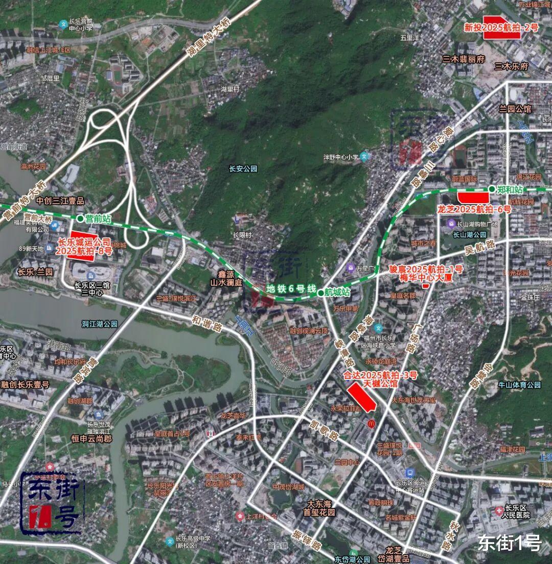 其次,地块够稀缺提升了民企的补仓意愿。龙芝刚拿的2025航拍-6号地块就南向直面长山湖,容积率1.1-1.3,是长乐传统核心区难得的一线湖景低密住宅。而且距离地铁6号线郑和站不足百米,能快速通达福州主城。