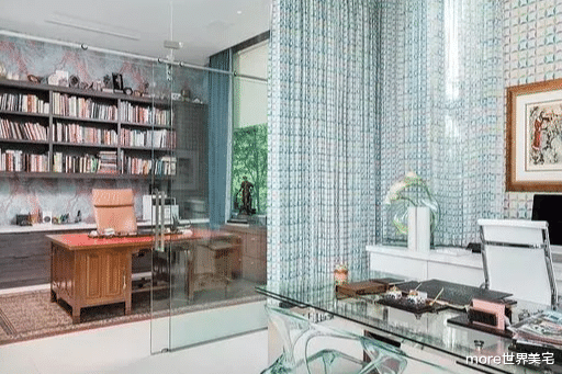 一层设置:中央走廊连接宏伟玄关(含双螺旋楼梯)、开放式起居用餐区、两层通高客厅、厨房及家庭娱乐室。两个独立办公室采用玻璃隔断设计, media room配备隐藏式投影系统