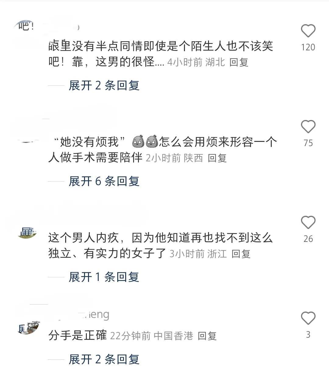 生活中如果我有伴侣,我动四次手术,他没有一次陪同,我想我肯定会和他分手。