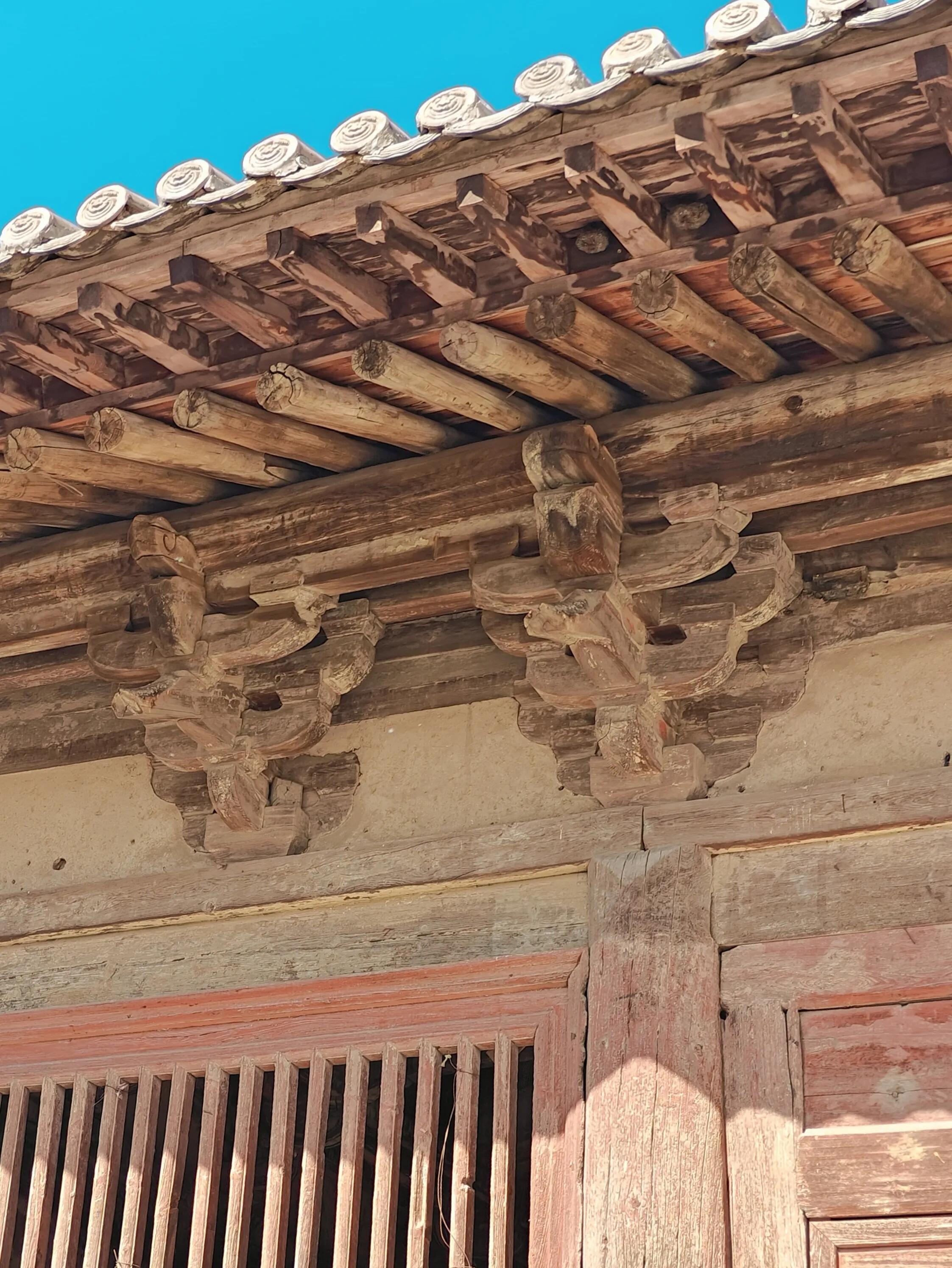 绕着殿内走了一圈,目光总忍不住落在那些斗拱上。单翘单昂的规制不算复杂,可每一组斗拱的衔接都严丝合缝,斗的方形、拱的弧形、昂的斜挑,搭配得恰到好处,没有多余的装饰,却透着股简洁的力量感。指尖轻轻拂过斗拱的边缘,能摸到木质的纹理与岁月留下的包浆,仿佛能感受到当年工匠们一凿一斧的用心。面阔三间、进深三间的殿宇,平面近似方形,这样的布局让殿内空间显得格外规整,站在中间仰头看“井”字梁架,竟有种对称的美感,让人忍不住想拿出手机记录,又怕闪光灯惊扰了这份静谧。