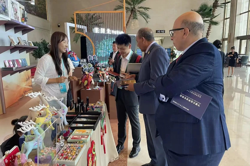 展会期间,武功展区吸引了大量国内外参 展商及游客驻足咨询,特别是刺绣、麦秆画等非遗产品,以其深厚的文化内涵和精湛的工艺水平,引发广泛关注。参展人员与国内外友人深入交流产品创作理念、文化传承价值及制作工艺,现场洽谈氛围热烈,有效提升了武功电商产品的国际知名度和影响力,为后续深化合作奠定了坚实基础。