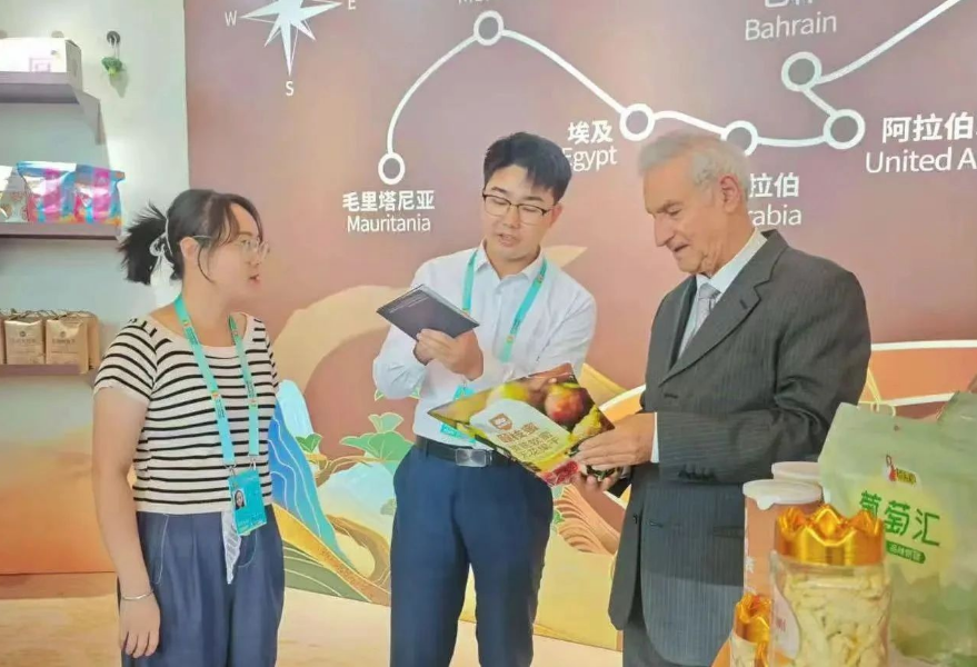 在此次中阿博览会特色展品展销对接活动中,我县依托县域特色资源禀赋,精心筛选并组织电商企业参展,集中展示了大枣、葡萄干、核桃、西梅、松子、红杏干、桑葚干、枸杞、椰枣等30余种优质农产品,以及刺绣帆布包、麦秆画、草编、九色鹿摆件等非遗文创产品。这些展品不仅体现了武功“农产品富县”的产业基础,更彰显了“文化强县”建设中非遗技艺与现代电商融合发展的创新成果。