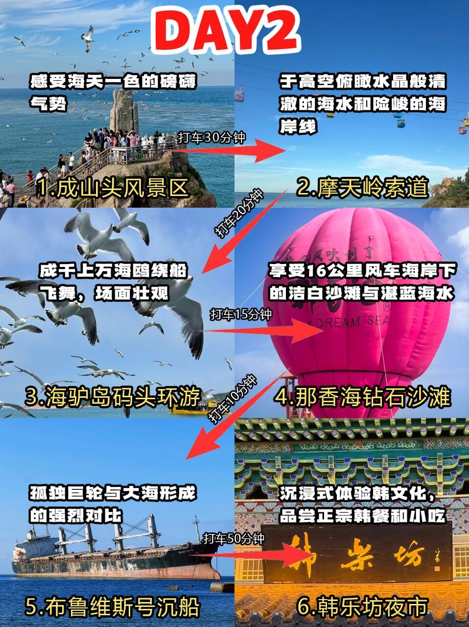 ☀️Day2:成山头风景区→摩天轮索道→海驴岛码头环游→那香海钻石沙滩→布鲁维斯号沉船→韩乐坊夜市