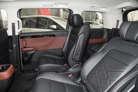 座椅的材质也很有讲究,是那种带点透气孔的皮质,夏天坐久了不闷汗,冬天也不会太凉。中间的过道有将近 30cm 宽,老人从第二排挪到第三排时,不用弯腰侧身,直接就能走过去,这一点比之前试驾过的某款 MPV 要好得多(那款车中间过道太窄,老人得侧着身子挤过去)。