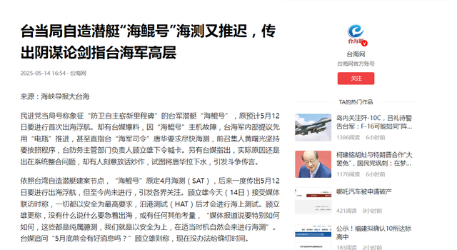 说到内部的糟心事,台军那个被吹得神乎其神的宝贝疙瘩——“海鲲号”潜艇,又掉链子了。