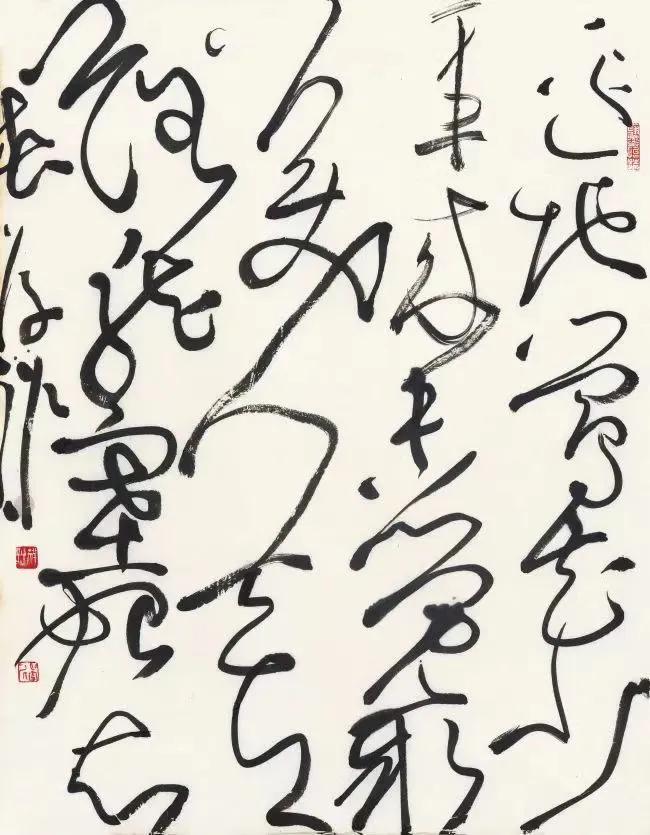 更离谱的是创作流程:写之前先打坐四十分钟,脑子里过电影——从怀素芭蕉夜雨到东京地铁霓虹,全过一遍,情绪灌到百分百,才睁眼抓笔。一笔下去,像开盲盒,能炸出多少层,连他自己都慌。有次学生在旁边数心跳,老头儿写到第三行,心率飙到130,纸上却稳得像印钞机。这种“情绪蹦极”式操作,让草书第一次有了“现场感”,看字如同看直播,屏幕外都能闻到肾上腺素。