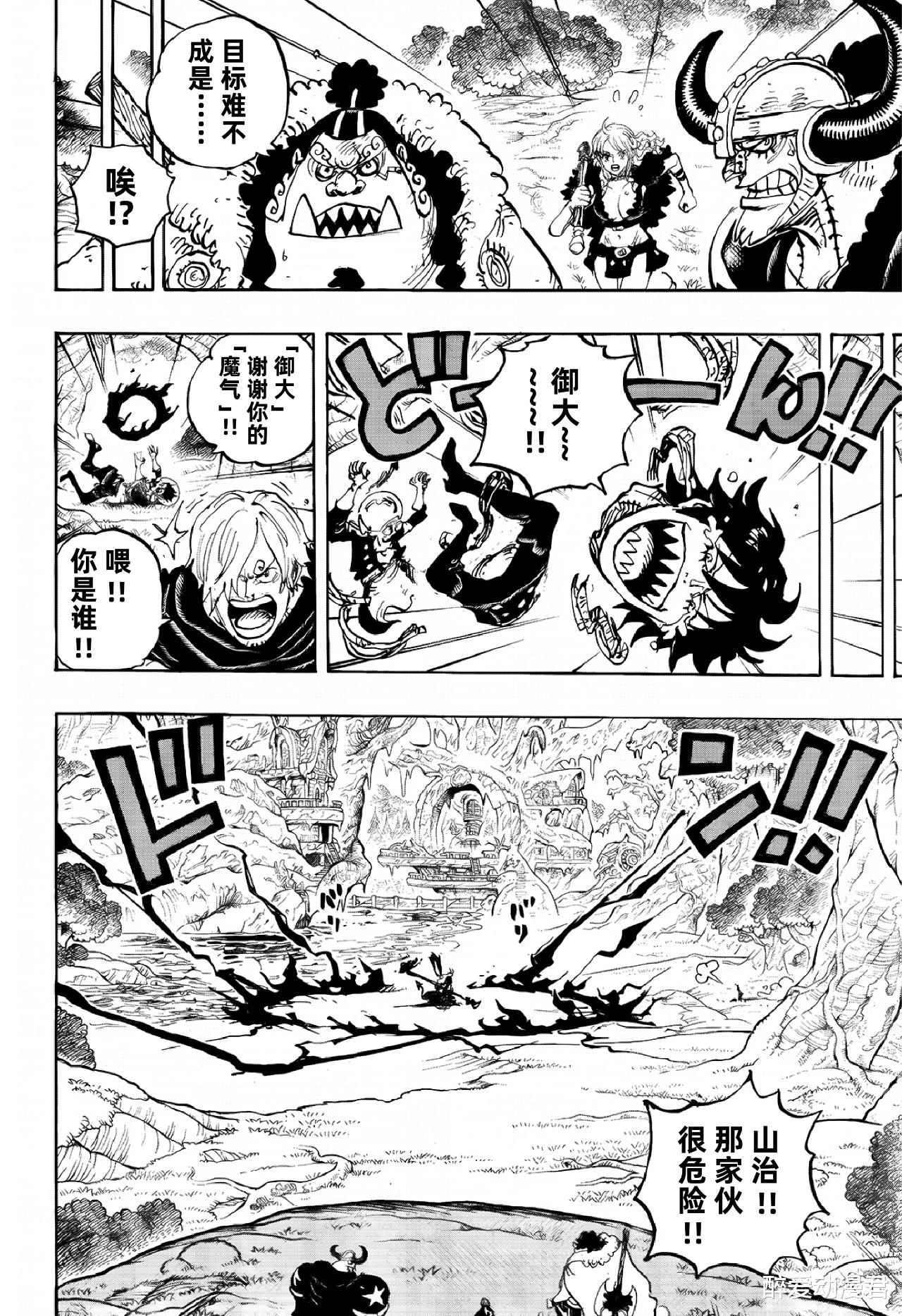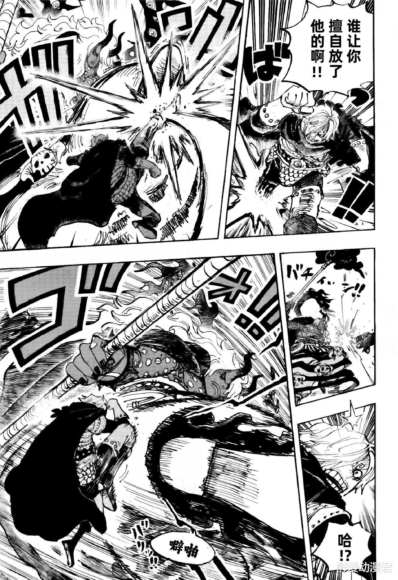 之后伊姆出现,山治直接冲了上去,他的暴击被伊姆随手挡住了,然后一脚就把山治给踢飞了!