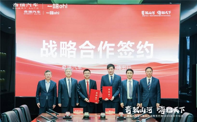 2026年1月23日,“奇驭山河·嗨驰天下”一嗨出行与奇瑞汽车战略签约暨5000台新车交付仪式在安徽芜湖隆重举行。奇瑞汽车股份有限公司董事长尹同跃,一嗨出行创始人、董事长兼CEO章瑞平,奇瑞汽车股份有限公司常务副总裁张国忠,一嗨出行车务副总裁唐宇钧,浦银金租总裁魏强,奇瑞汽车股份有限公司总裁助理张炳凤等嘉宾莅临现场,共同见证这一行业盛事。