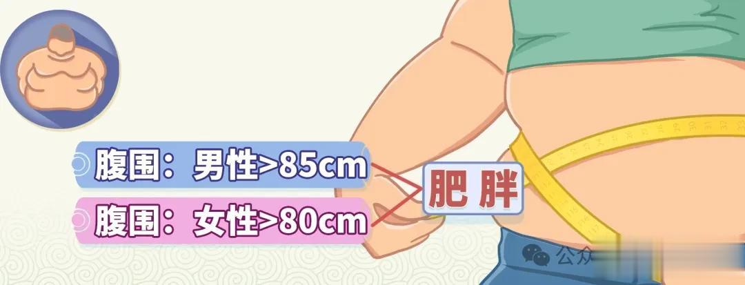 第二个是看“腹围”,肚子上的肉太多也是肥胖的一种,咱们叫“腹型肥胖”。