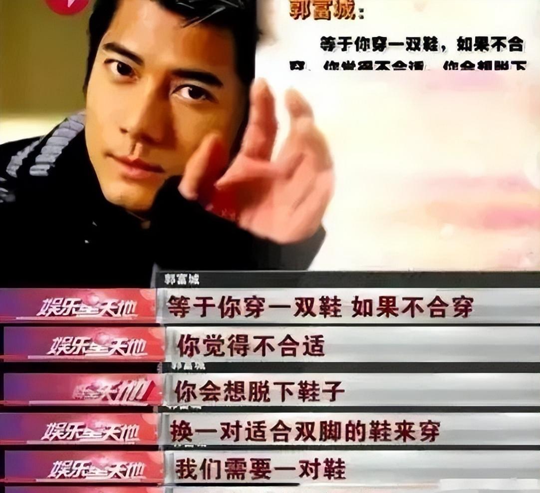 事后,郭富城以“鞋子不合脚”喻指这段感情,意欲脱之而后觅一双更为契合者。