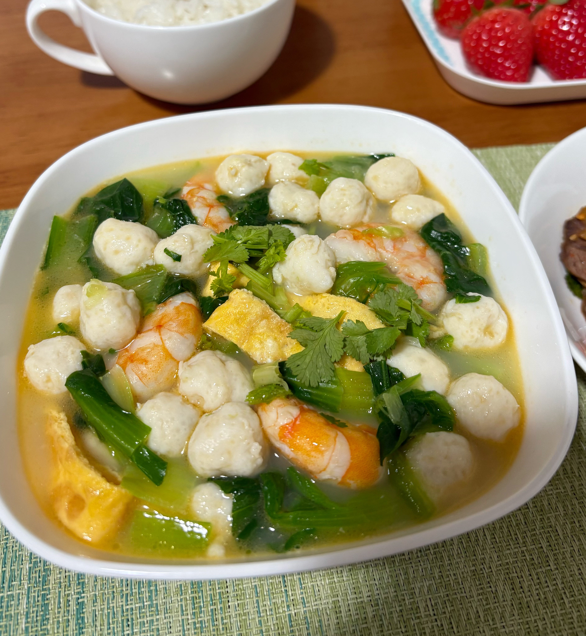 这碗三鲜汤,没有复杂的技法,没有昂贵的食材,却能在疲惫的傍晚,给家人一份温暖的慰藉。它让我想起小时候,母亲也常常做这样一锅汤。那时的虾仁没有现在多,鱼丸也是自家做的,但一家人围坐桌前,就着这碗汤,能吃下两大碗米饭。如今我也为人父母,才明白那汤里煮的,不仅是食材的鲜味,更是对家人无声的关爱。