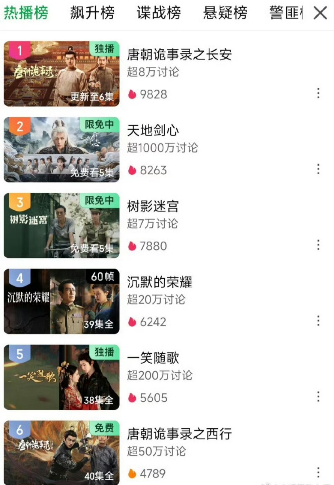 开播仅1小时,该剧站内热度便突破5000大关,这一成绩已经让不少同期剧集望尘莫及。然而,《唐朝诡事录之长安》的势头并未就此止步,7小时后,热度值飙升至8000,次日更是直接冲上9800+,刷新了爱奇艺古装探案剧的首播纪录。这样的数据表现,无疑是对剧集质量最直接的肯定。