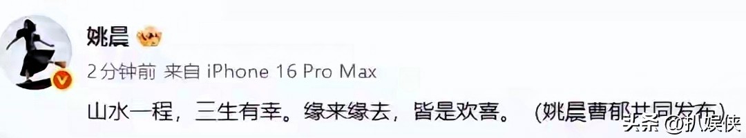 1. 姚晨、曹郁2026年3月16日官方联合离婚声明