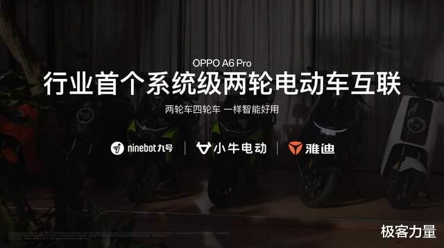针对户外使用场景,尤其是面向外卖骑手、快递员等户外人群,OPPO A6 Pro 特别配备了 1400nits 超亮阳光屏、高能户外模式 2.0、全场景 NFC 及满级触控功能,阳光下屏幕清晰可见,配送接单更高效;此外,A6 Pro 还联合雅迪、九号、小牛等品牌,在行业内首次实现系统级两轮车互联,支持无感解锁、车辆倾倒提醒与无网查找,让出行更便捷智能,骑手跑单更高效安心。