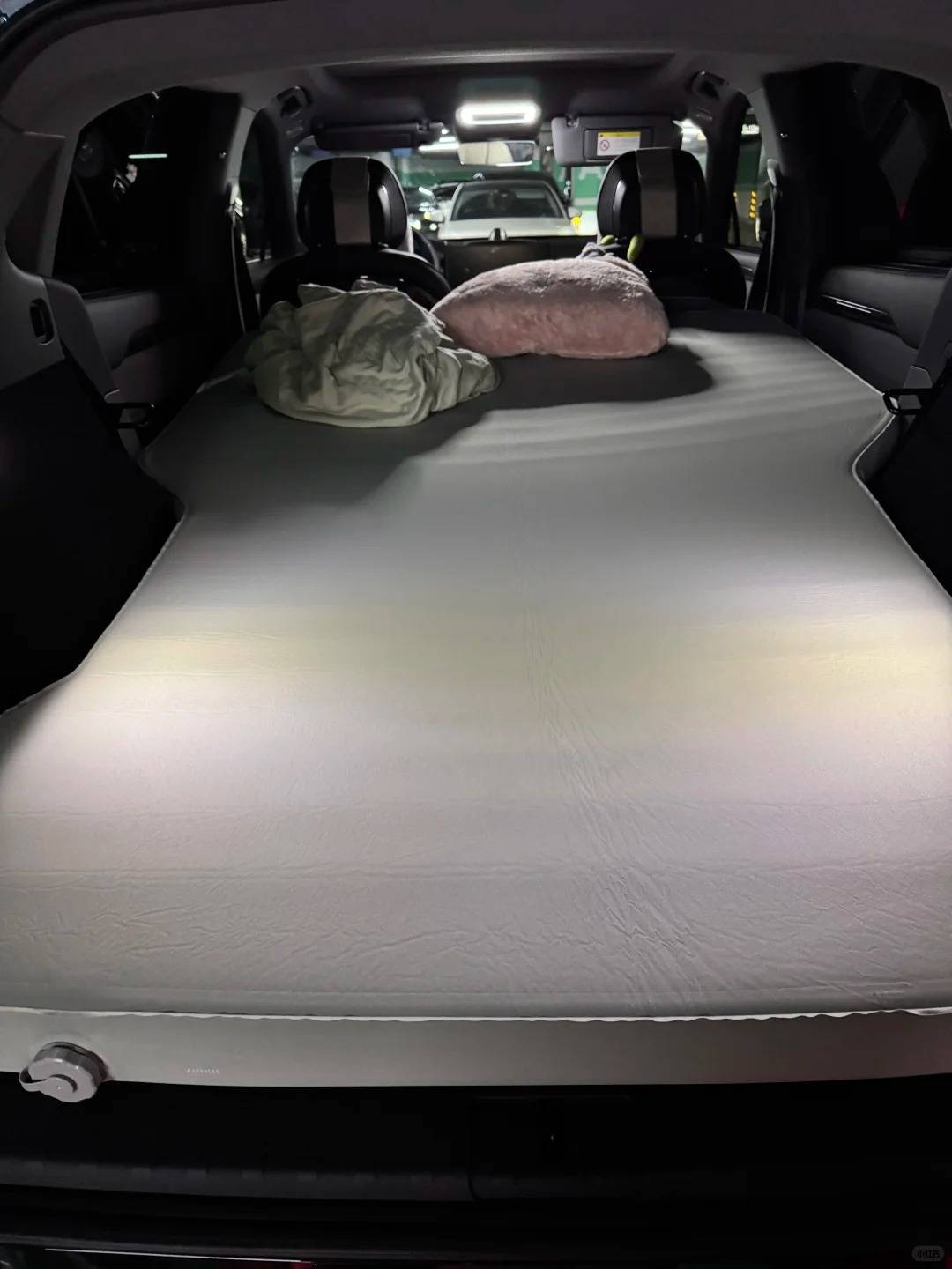 后备箱放倒直接当床,外放电煮火锅、烤串都够用