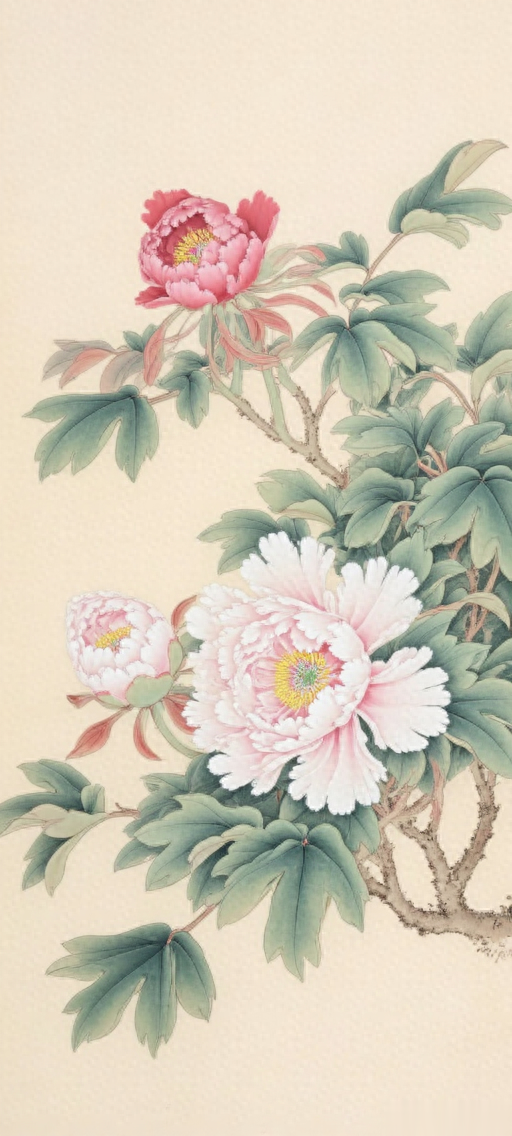 《粉黛牡丹》粉黛娇颜映晓光,牡丹绽蕊韵悠长。绿枝翠叶添佳色,静赏韶华梦也香。