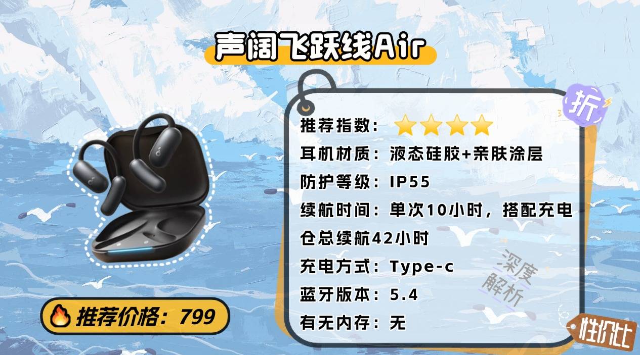 功能方面,耳机支持 AI 实时翻译,覆盖百种语言,翻译准确率高达 97%,适合跨语言交流。续航表现同样出色,单次可用约 10 小时,配合充电盒综合可达 42 小时,并支持快充。整体来看,飞跃线 Air 在舒适度、音质与智能功能上实现了全面均衡,是一款兼顾运动与日常的高端开放式耳机。