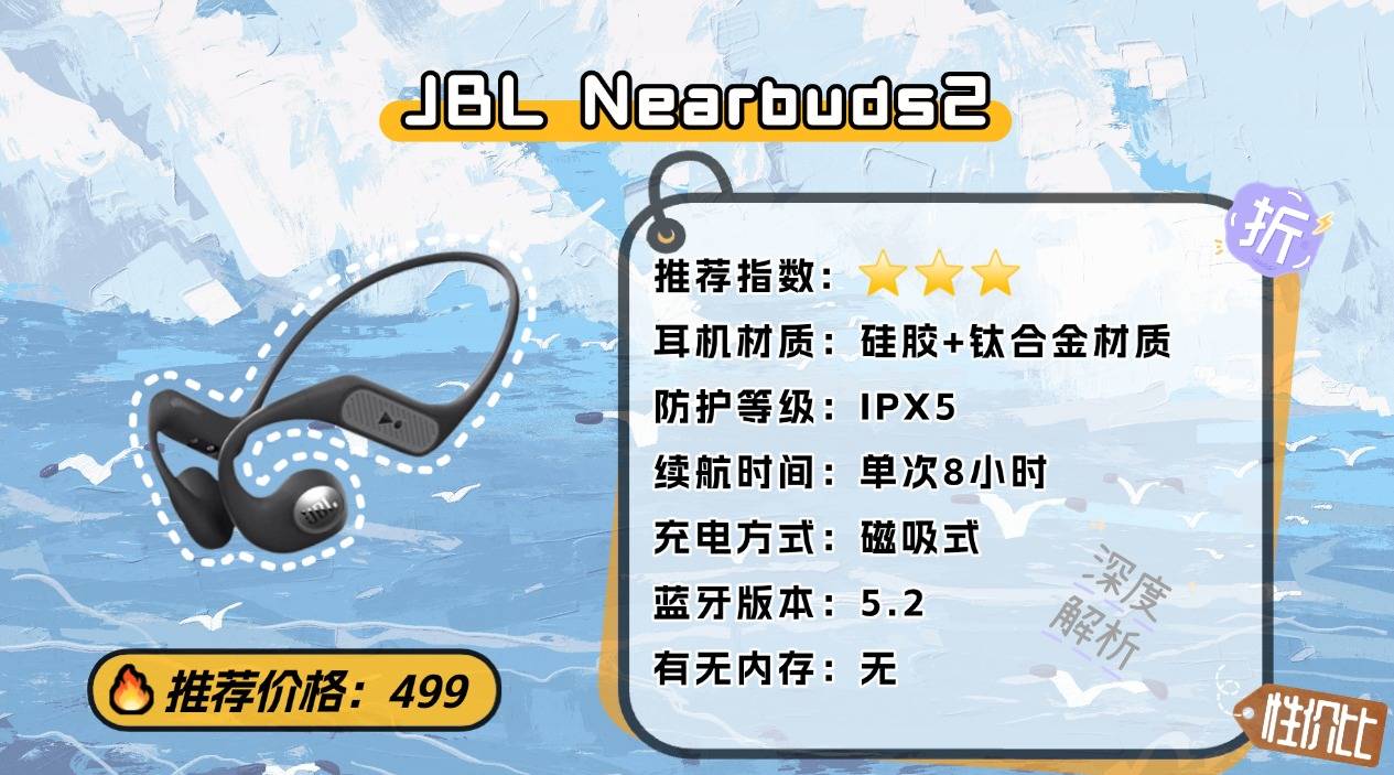 JBL Nearbuds 2 是一款开放式运动耳机,以轻盈佩戴和均衡音质成为跑步、骑行等场景的理想选择。