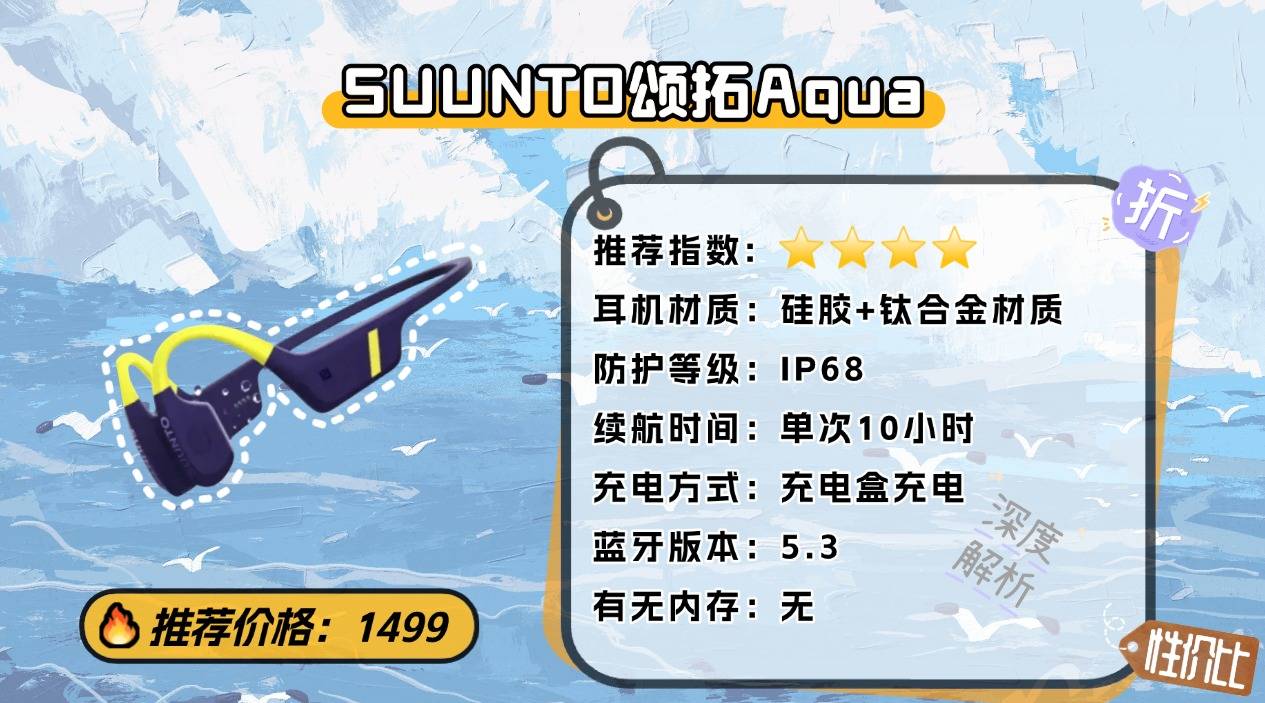 SUUNTO 颂拓 Aqua 是一款专为游泳与多场景运动打造的骨传导耳机,以专业防水与智能功能成为水上运动爱好者的理想选择。