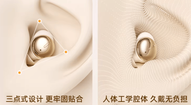 采用超薄贴合式人体工学设计,机身外形小巧,佩戴后不会明显突出于耳外,侧躺时与枕头接触的压迫感相对温和,不会有明显不适感。耳塞采用柔软材质,入耳角度经过基础优化,能适配多数耳型,贴合度处于中等水平,长时间连续佩戴可能会产生轻微负重感。