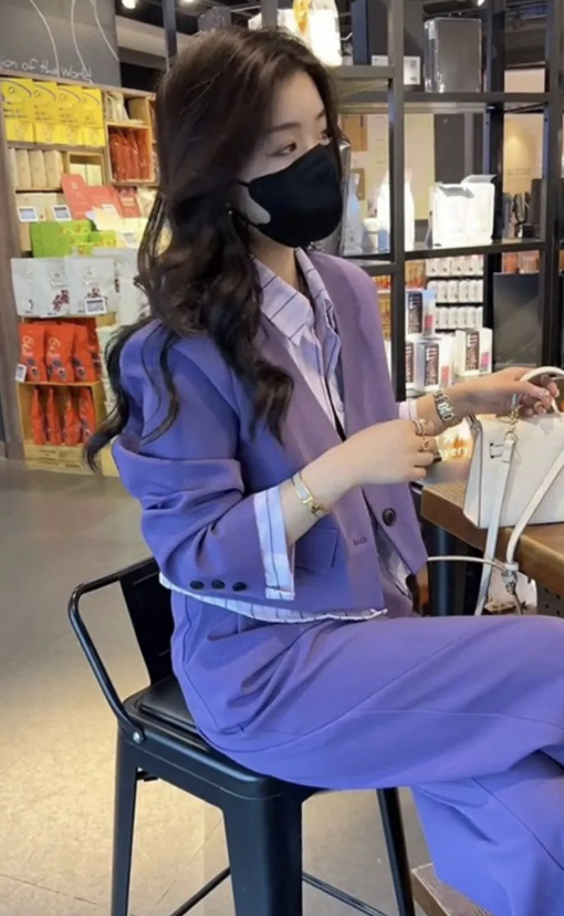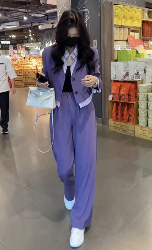 然后再来说一说裤子的选择,西装再搭配的时候选择的裤子还是有很多种的,比如说如果想要走休闲路线的话,那么就可以选择牛仔裤,如果想要走商务路线的话,那么就可以选择西服裤子。但是这两种裤子对于三四十岁的女性来说都不是最优的选择,所以在这个时候我们完全可以选择一款阔腿裤来作为搭配。之所以要选择一款适合自己的阔腿裤,就是因为阔腿裤看上去是比较松垮的,尤其是对于那些腿部比例没有那么好或者是腿比较粗的女性来说,选择阔腿裤能够进一步的遮挡掉身材的瑕疵,这样一来整体的造型看起来就不会显得那么拉胯了。