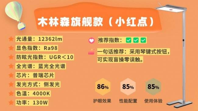 落地护眼大路灯第九名:木林森旗舰款(小红点);上下出光可独立控制,使用场景更灵活。