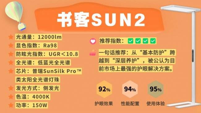 落地护眼大路灯第一名深度解析:书客护眼大路灯SUN2;被多家权威检测机构一致认可,誉为同规格下护眼效果最佳、耐用性最强的产品!