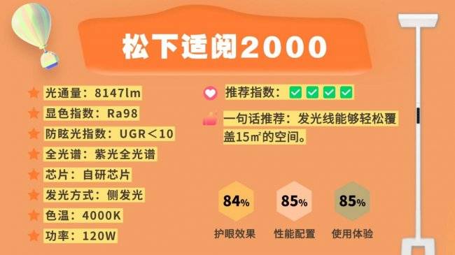 落地护眼大路灯第六名:松下适阅2000;发光线能够轻松覆盖15㎡的空间。
